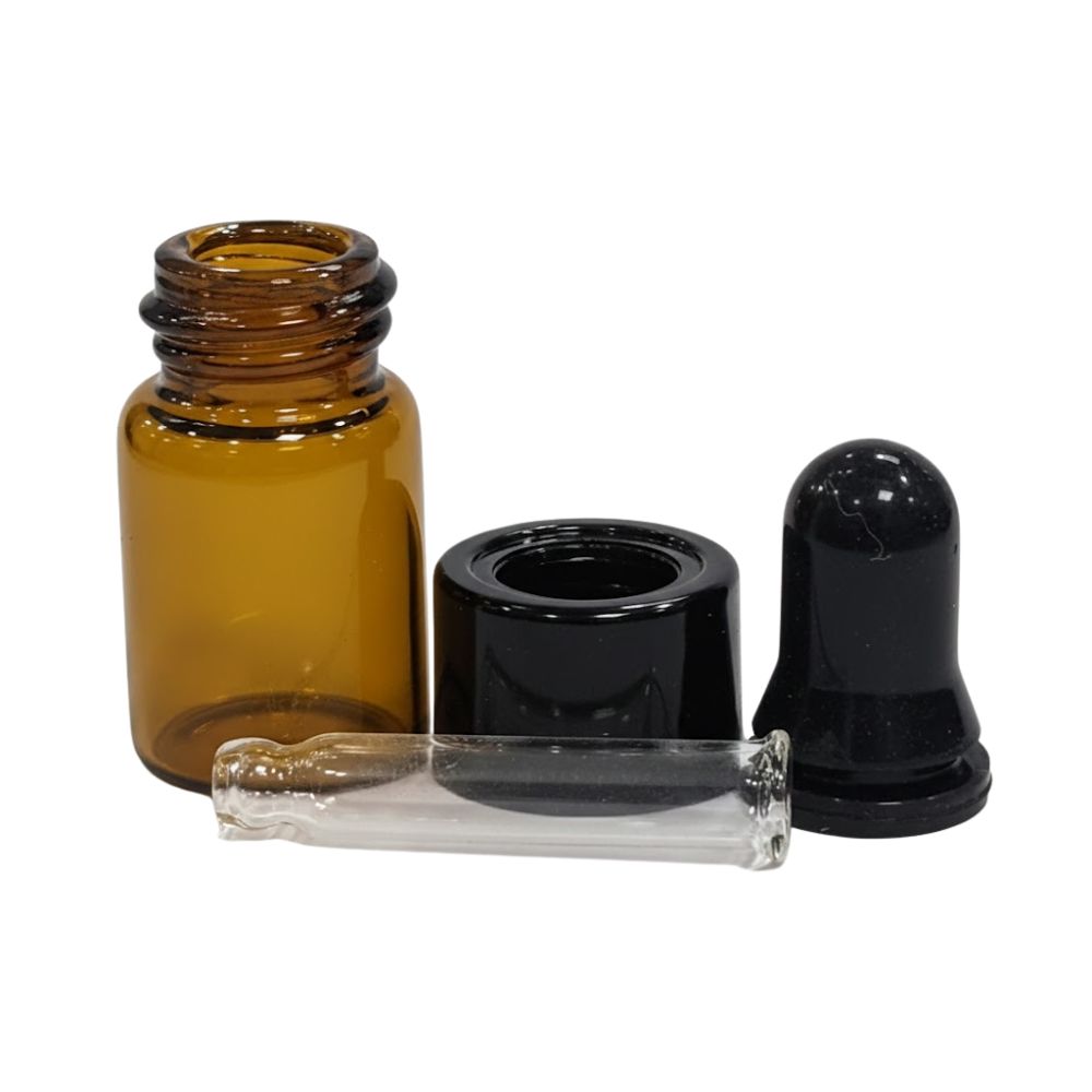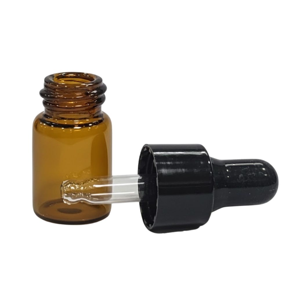 VIDRO AMBAR 2ML (TAMPA PRETA + BULBO + CANULA + VIDRO)